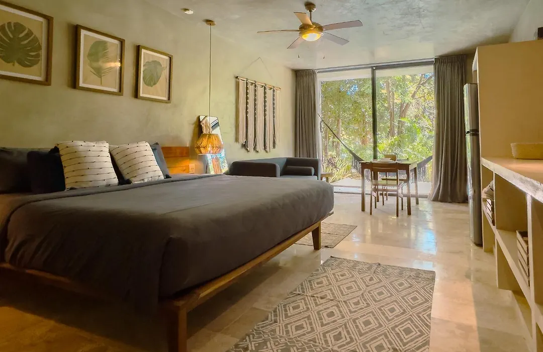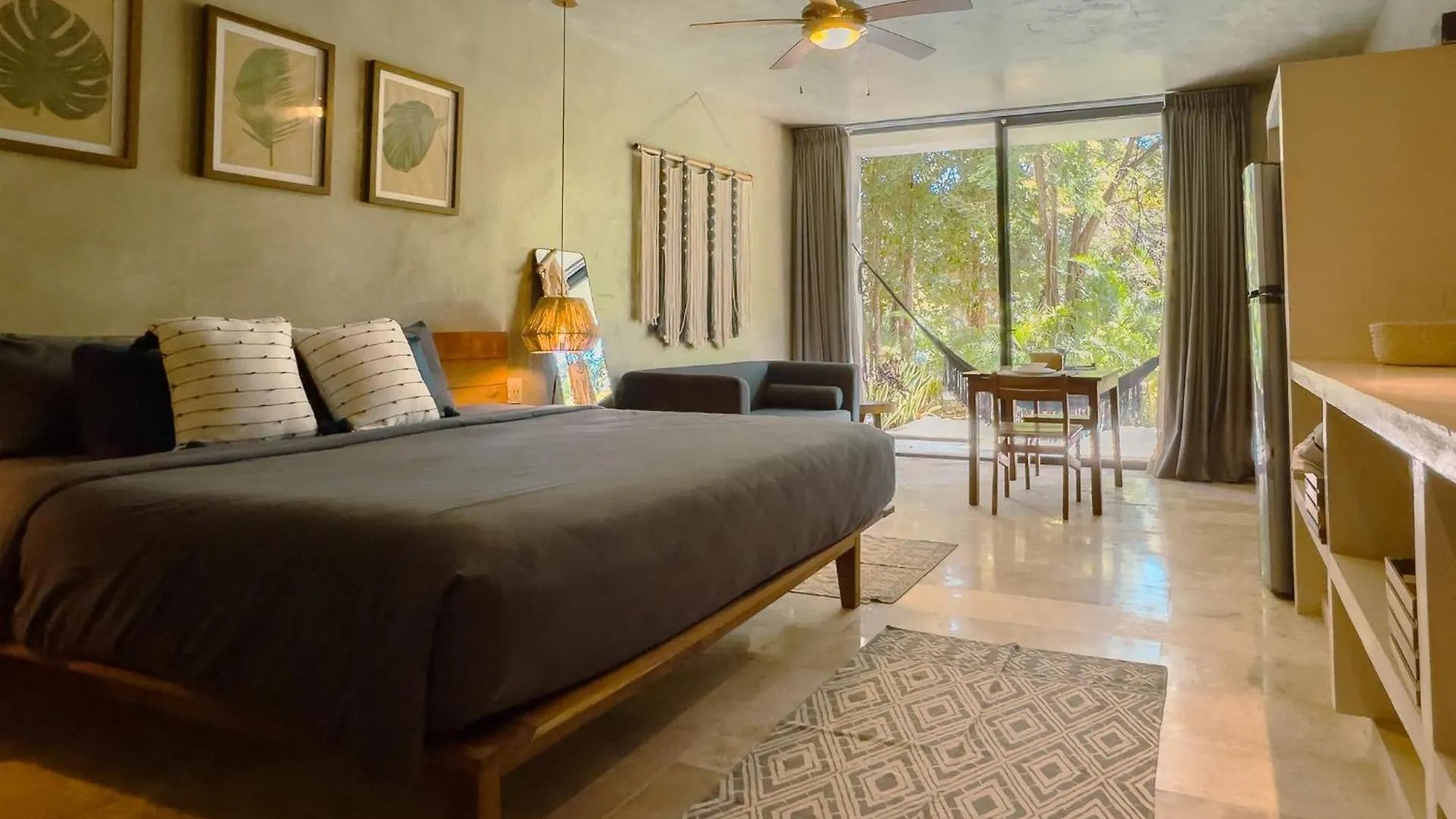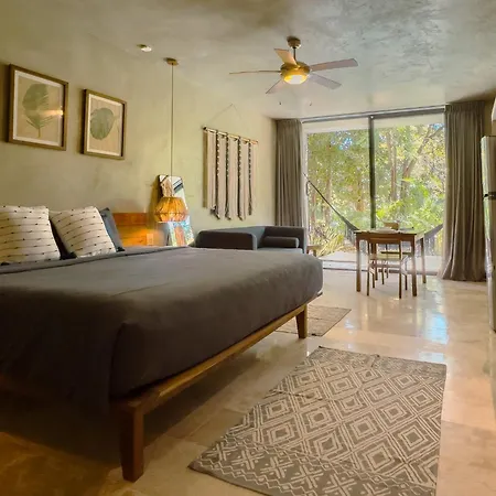 Studio 107 Private Pool & King Bed Seremonia Tulum ensures your comfort by providing a kitchen area with a fridge. The apartment features a terrace on which guests can unwind.
