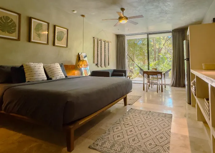 Studio 107 Private Pool & King Bed Seremonia Tulum is around a 25-minute walk from Cenote Yax Kin Camping and provides spa facilities such as a hot tub. Guests can make use of Wi-Fi and a free private parking lot, as well as rent cars to explore the local area.